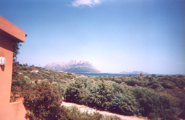 Vista dalla veranda su Tavolara, Molara e le altre isolette (Piana, Cavalli, Reulino, Molarotto), raggiungibili con gommone o piccola imbarcazione. A Porto Istana è possibile noleggiare gommoni e piccole imbarcazioni.